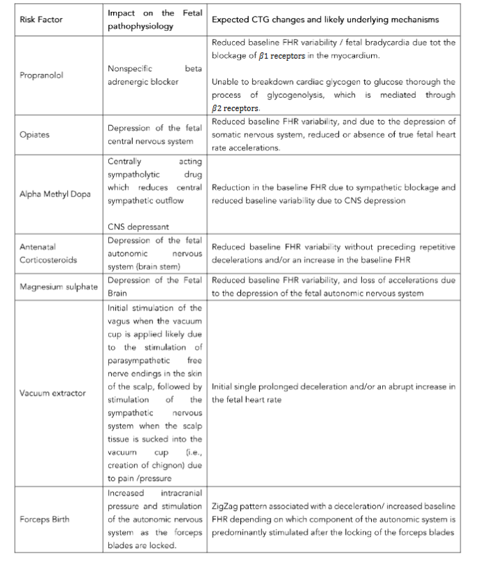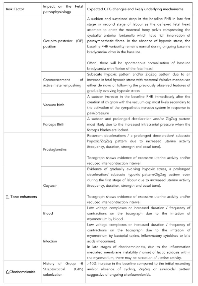 Therefore, knowledge of specific CTG changes associated with risk factors which are associated with fetal compromise (Table 1) is essential to anticipate and respond to these changes in a timely manner to optimise perinatal outcomes.