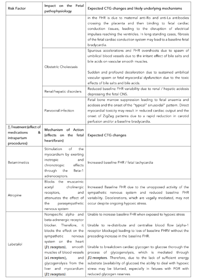 This is because several antepartum and intrapartum risk factors may cause fetal compromise during labour, and it is essential to anticipate and timely recognise the specific changes on the CTG trace caused by this underlying pathology.