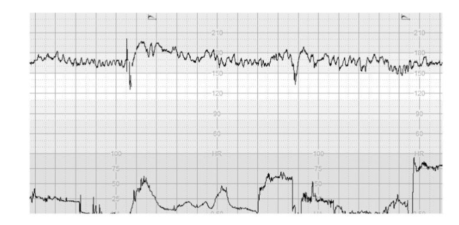 This initial change on the CTG trace (>10% increase in baseline FHR, e.g., from 120 bpm to 135 bpm) may be easily missed because several CTG guidelines continue to provide a large “population-based” range (110–160 bpm) without individualising care.