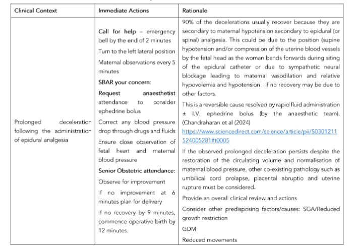 In addition, the anticipation and prediction of CTG changes based on the observed clinical context are crucial not only to institute timely and appropriate interventions but also to avoid unnecessary obstetric interventions. This should be done after the fetus has been deemed to be “FIT” for labour, and should continue throughout the intrapartum period, and when additional risk factors are observed, or medications are administered to the parturient.