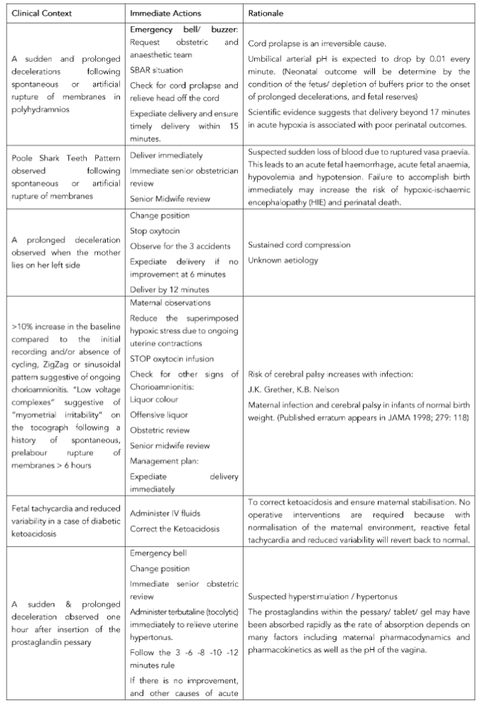3. Pereira S, Chandraharan E. Recognition of chronic hypoxia and pre-existing foetal injury on the cardiotocograph (CTG): Urgent need to think beyond the guidelines. Porto Biomed J. 2017 Jul-Aug;2(4):124-129.